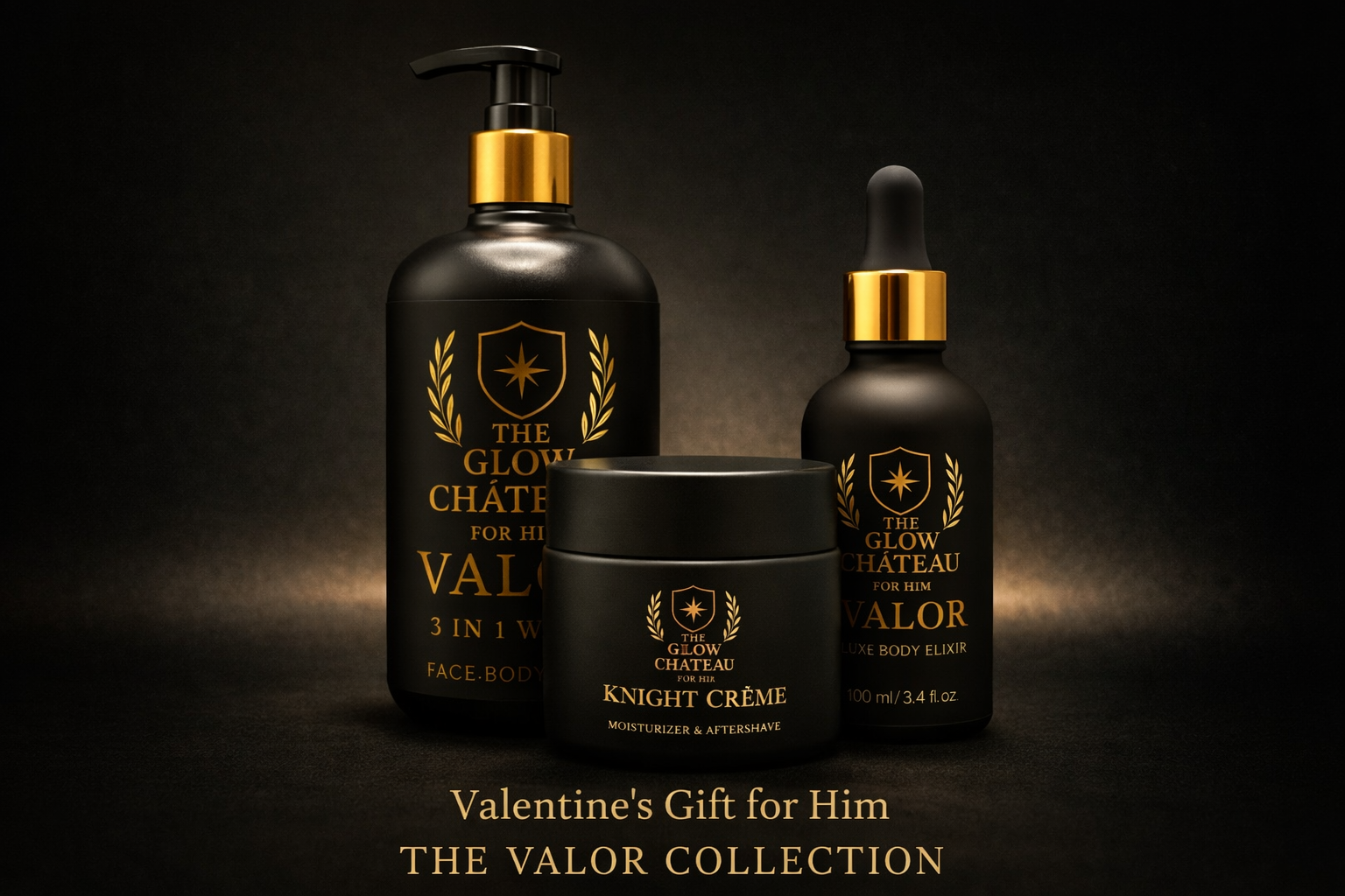 The Valor Collection by The Glow Château: For Him is a luxury grooming set crafted for men who appreciate confidence, simplicity, and elevated self-care. Designed to cleanse, hydrate, and refine, this trio delivers an effortless routine with a powerful presence.